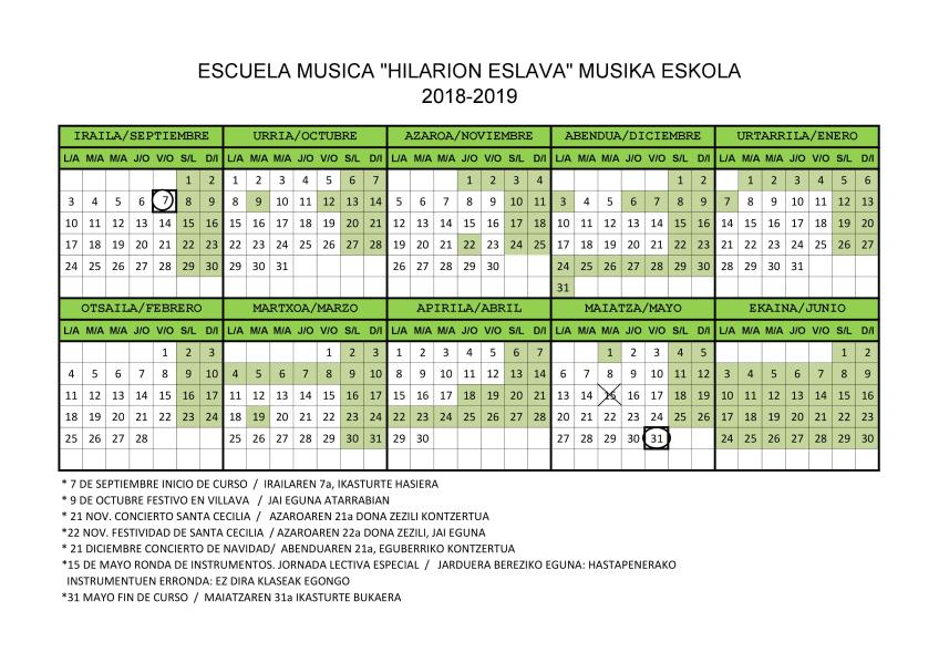 CALENDARIO ESCOLAR/ESKOLA EGUTEGIA