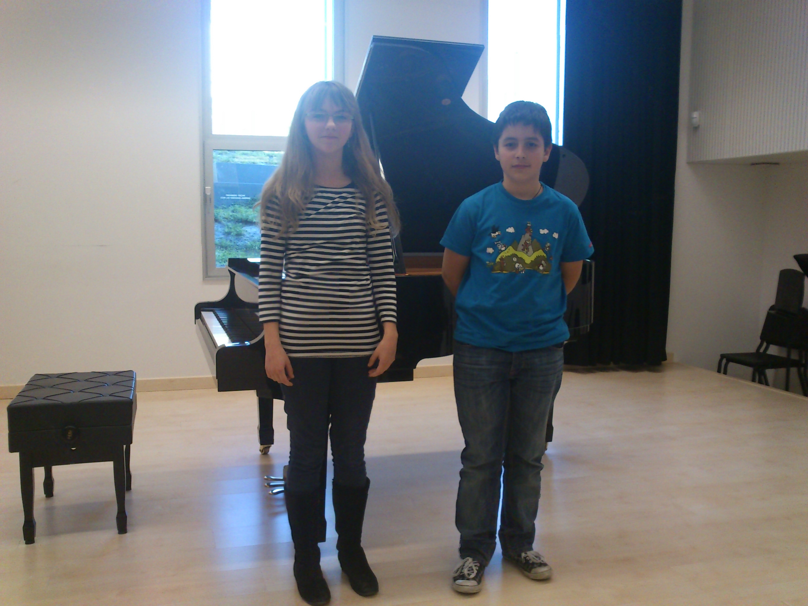 Tocaron dos obras cada uno. Jara «The Little Shepherd» de Debussy y «Bagatella nº 1» Op.119 de Beethoven y Raúl «Estudio nº1» Op. 46 de Heller y «Cumpleaños» del Album para niños de Kachaturian, pedazo de obras. Nos quedan aproximadamente veinte días de trabajo todavía para seguir mejorando y ultimando detalles, pero lo habéis hecho francamente bien.