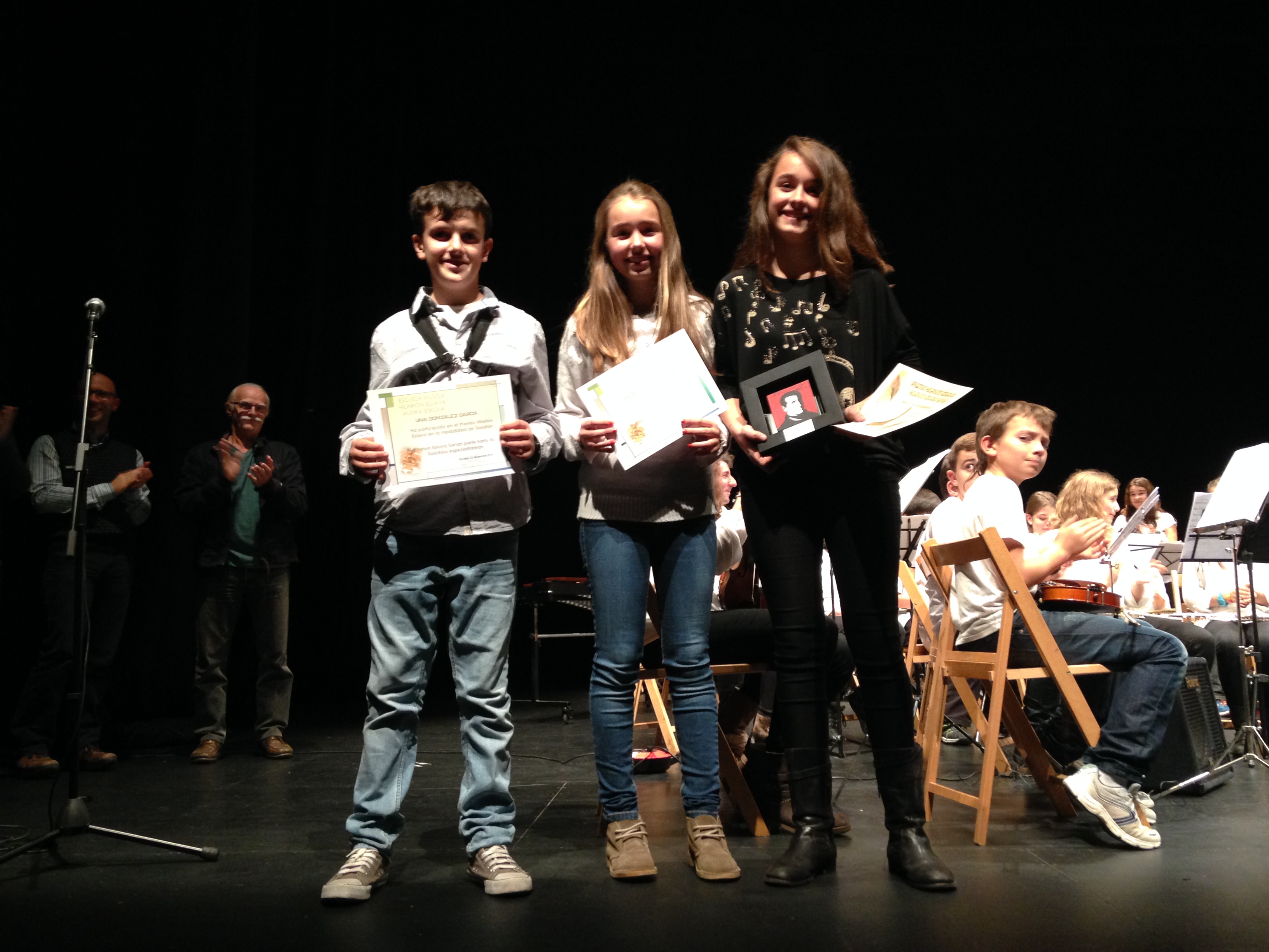 En dicho concierto también fueron protagonistas los alumnos premiados en el curso 2013-14 ikasturtean saritutako ikasleak ere protagonistak izan ziren aipatutako kontzertuan: