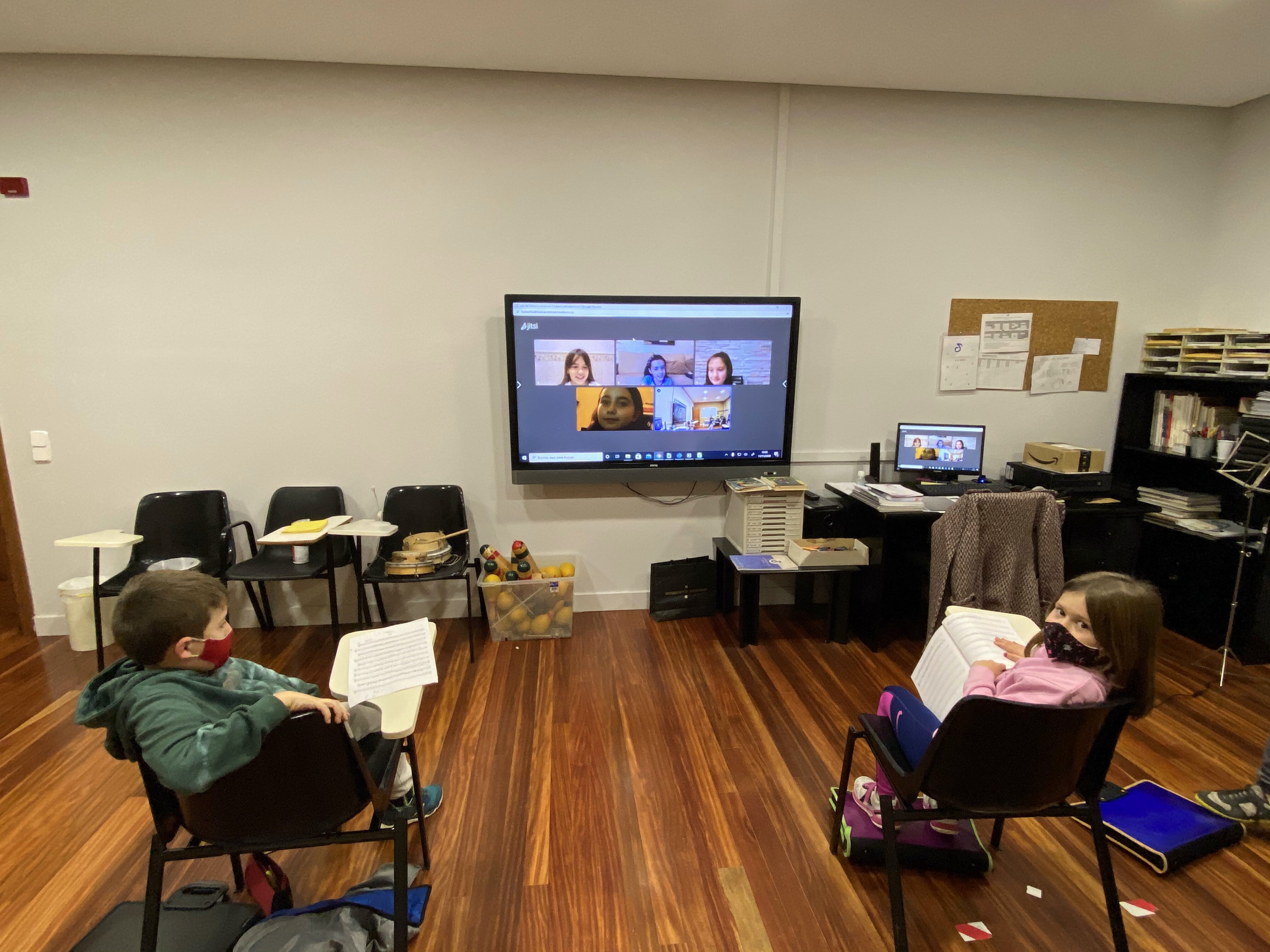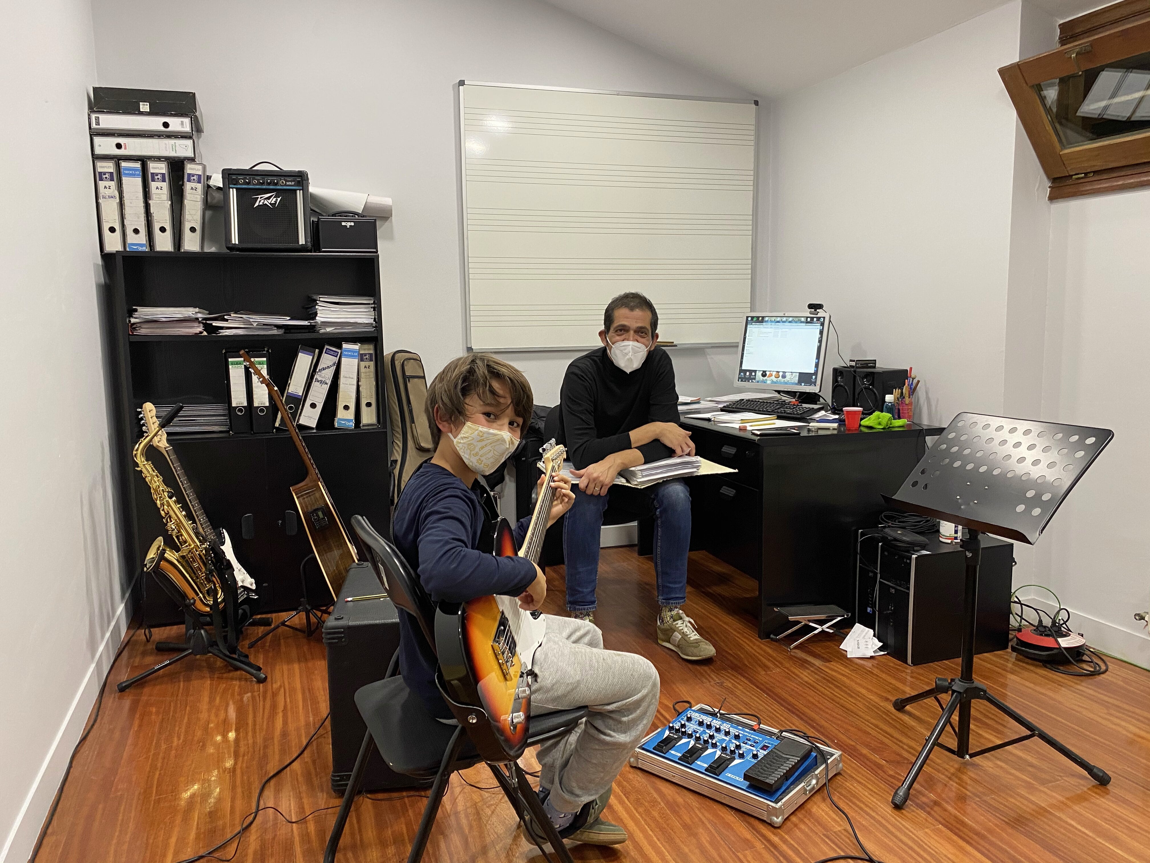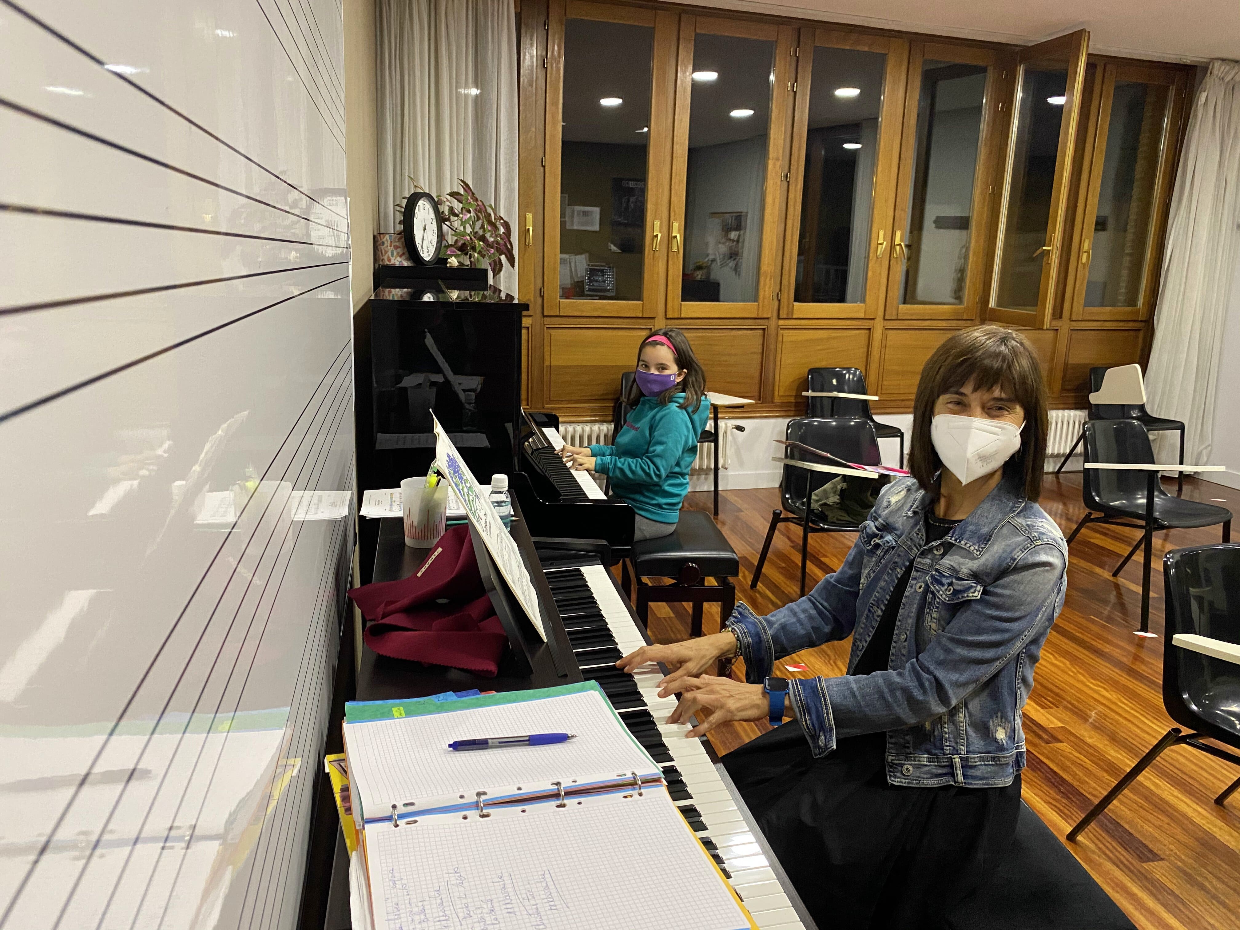 Pero toda situación tiene su parte positiva, y es el aprendizaje que supone enfrentarse a ella y aprender nuevos recursos. Es la comprensión por parte de todos/as y el esfuerzo de adaptarse para seguir adelante. La implicación para que todo funcione, como por ejemplo el caso de Ibai y Javier, que fueron quienes durante mañanas de un trabajo totalmente ajeno al suyo, construyeron desde cero las mamparas protectoras que se utilizan en las clases de instrumentos de viento, canto, agrupaciones; o de las familias, haciendo malabares con los calendarios de rotación de las clases de lenguaje musical; en fin, de todos/as los/as que formamos parte de esta escuela.