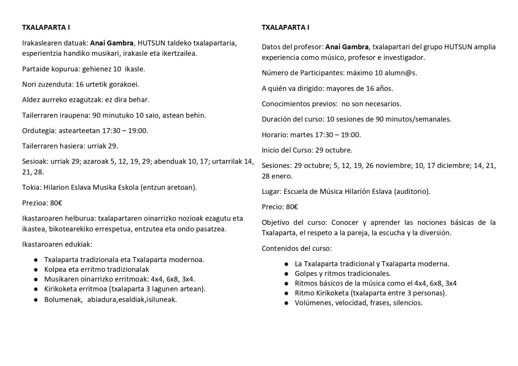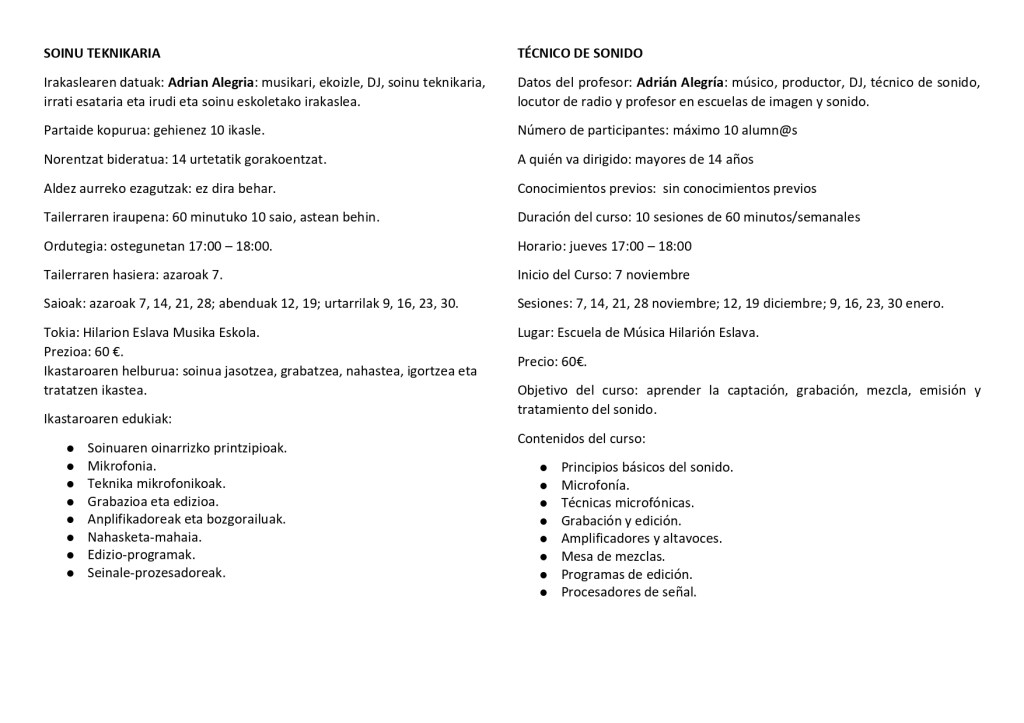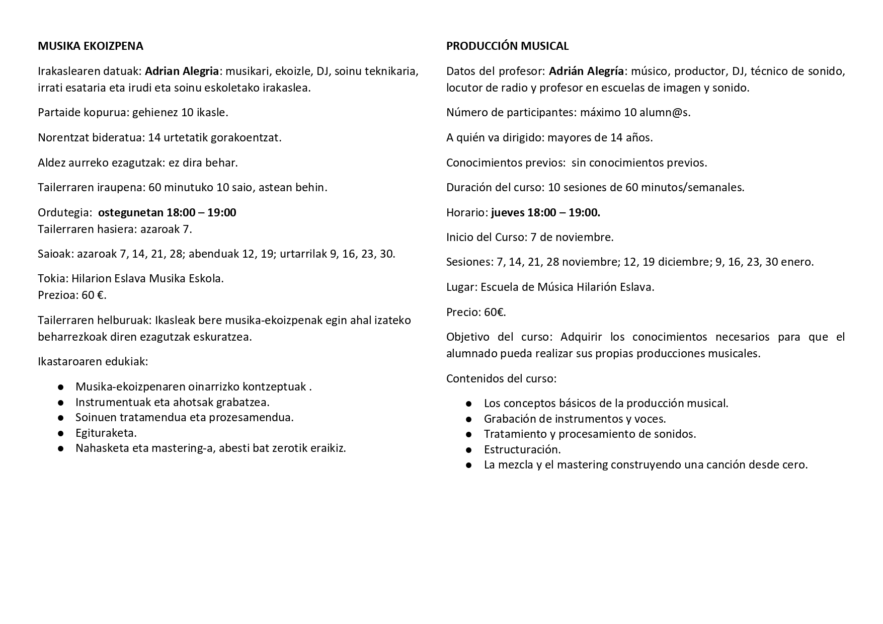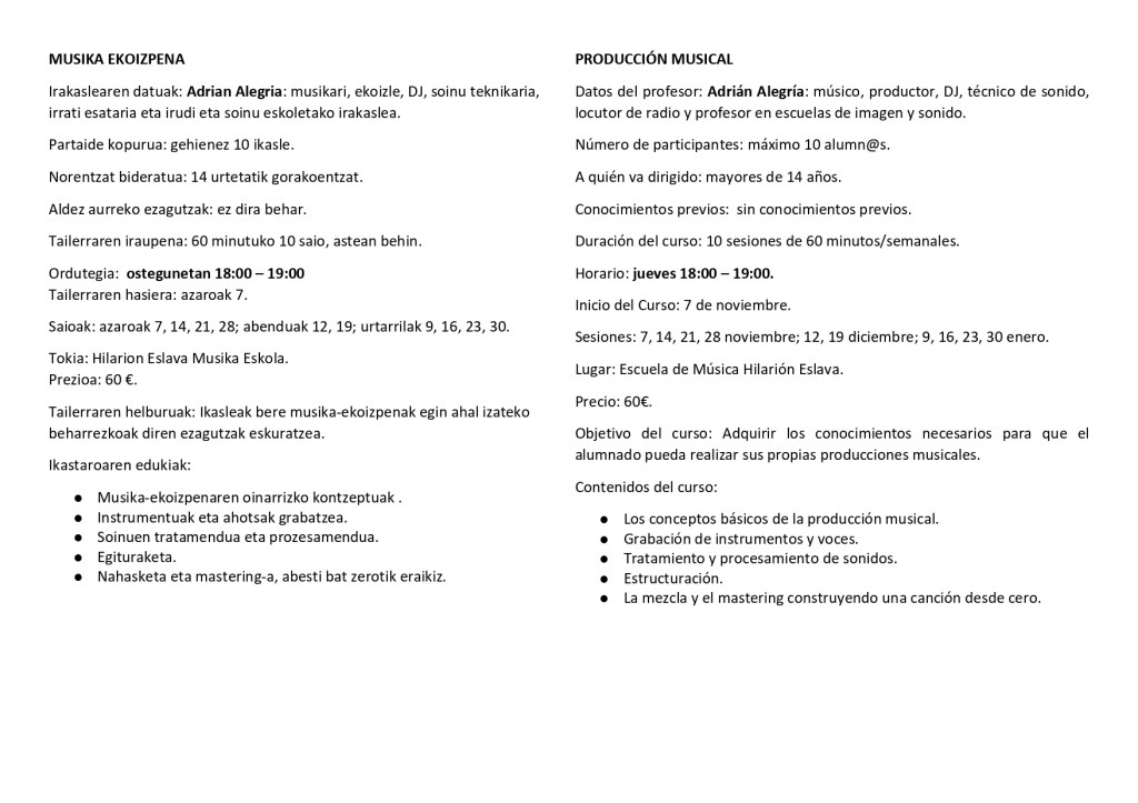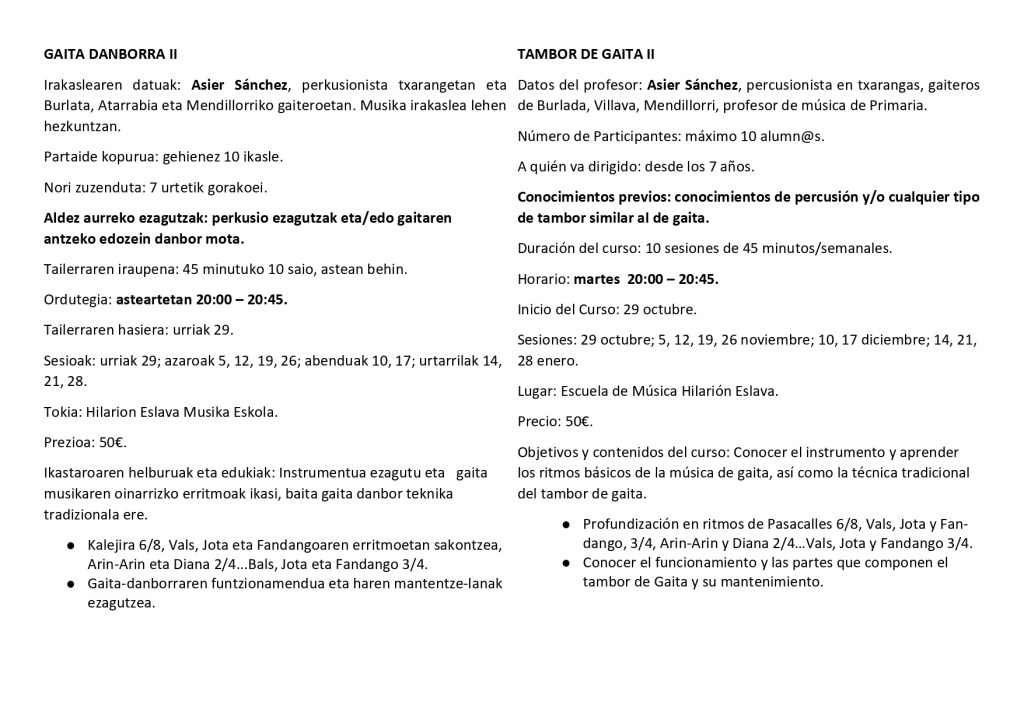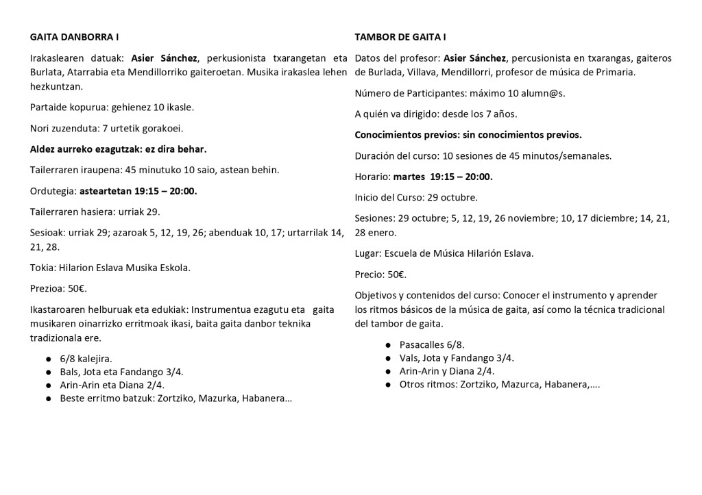 Laster hasiko dira ikasturte honetarako antolatutako musika tailerrak. Eskaintza zabala dugu eta hemen aurkituko duzue bakoitzari buruzko informazioa. Izena emateko datak urriaren 14tik 24ra izango dira, eskolan bertan edo posta elektroniko bat bidaliz hemen aurkituko duzuen formularioarekin:
