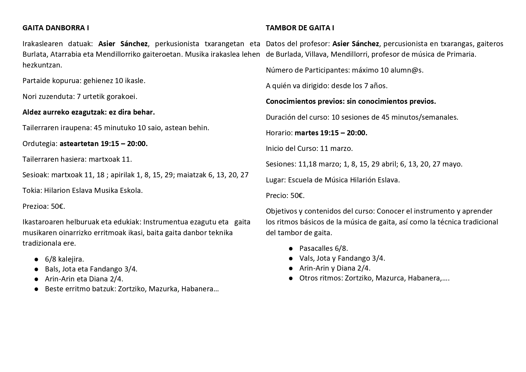 Izena emateko epea: Otsailaren 28ra arte, Hilarion Eslava Musika eskolan edo escuelmusicahilarioneslava@gmail.com posta elektronikoaren bidez.