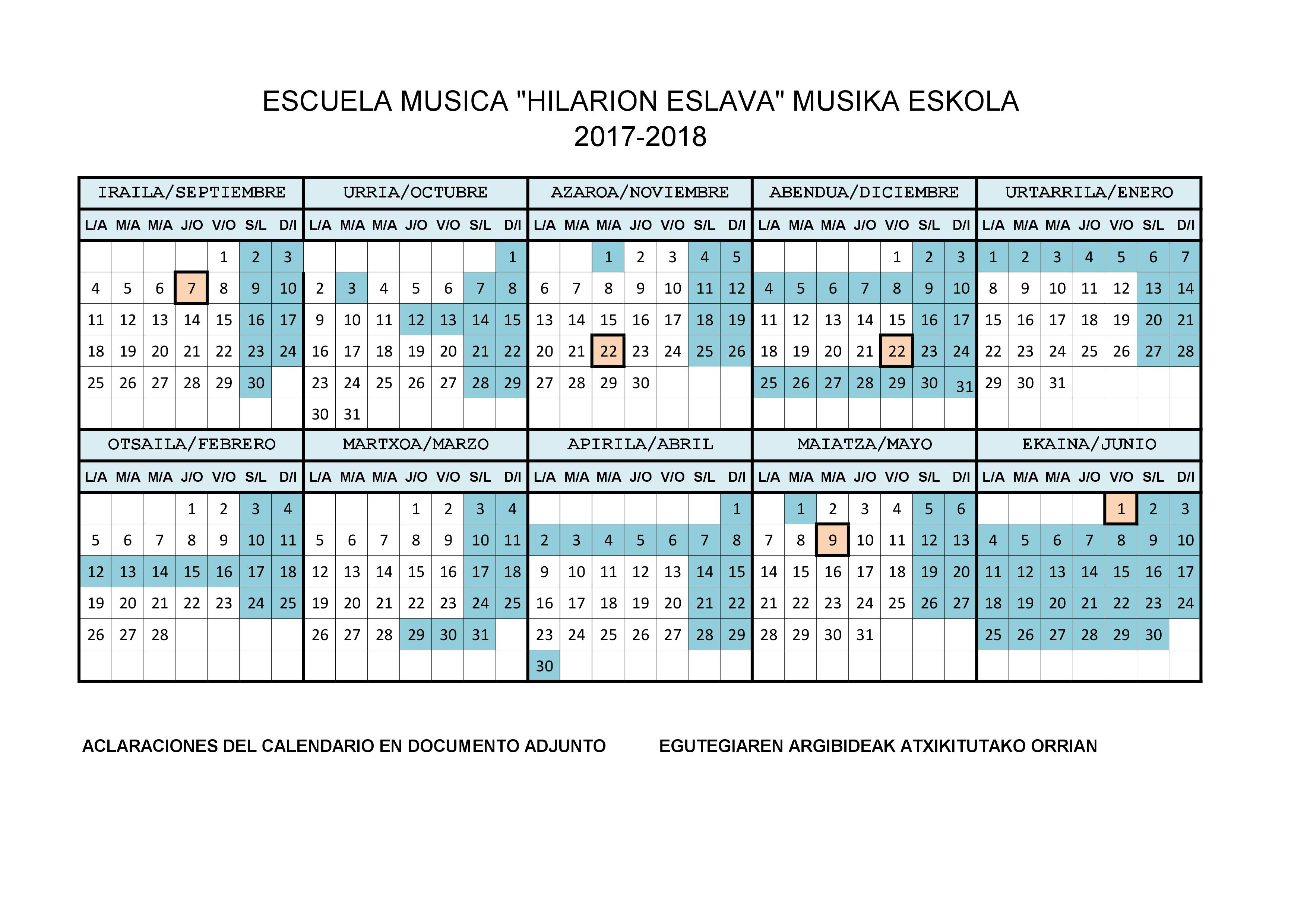 CALENDARIO ESCOLAR/ESKOLA EGUTEGIA