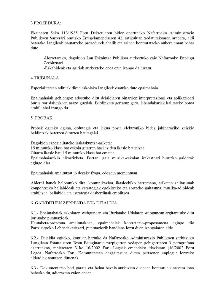 HAUTAPROBEN BIDEZ GITARRA KLASIKOAREN ESPEZIALITATEAN IRAKASLE LANPOSTUA BETETZEKO HAUTAGAIEN ZERRENDA ERATZEKO DEIALDIA – CONVOCATORIA PARA LA CONSTITUCIÓN, A TRAVÉS DE PRUEBAS SELECTIVAS, DE UNA RELACIÓN DE ASPIRANTES AL DESEMPEÑO DEL PUESTO DE TRABAJO DE PROFESOR/A EN LA ESPECIALIDAD DE GUITARRA CLÁSICA