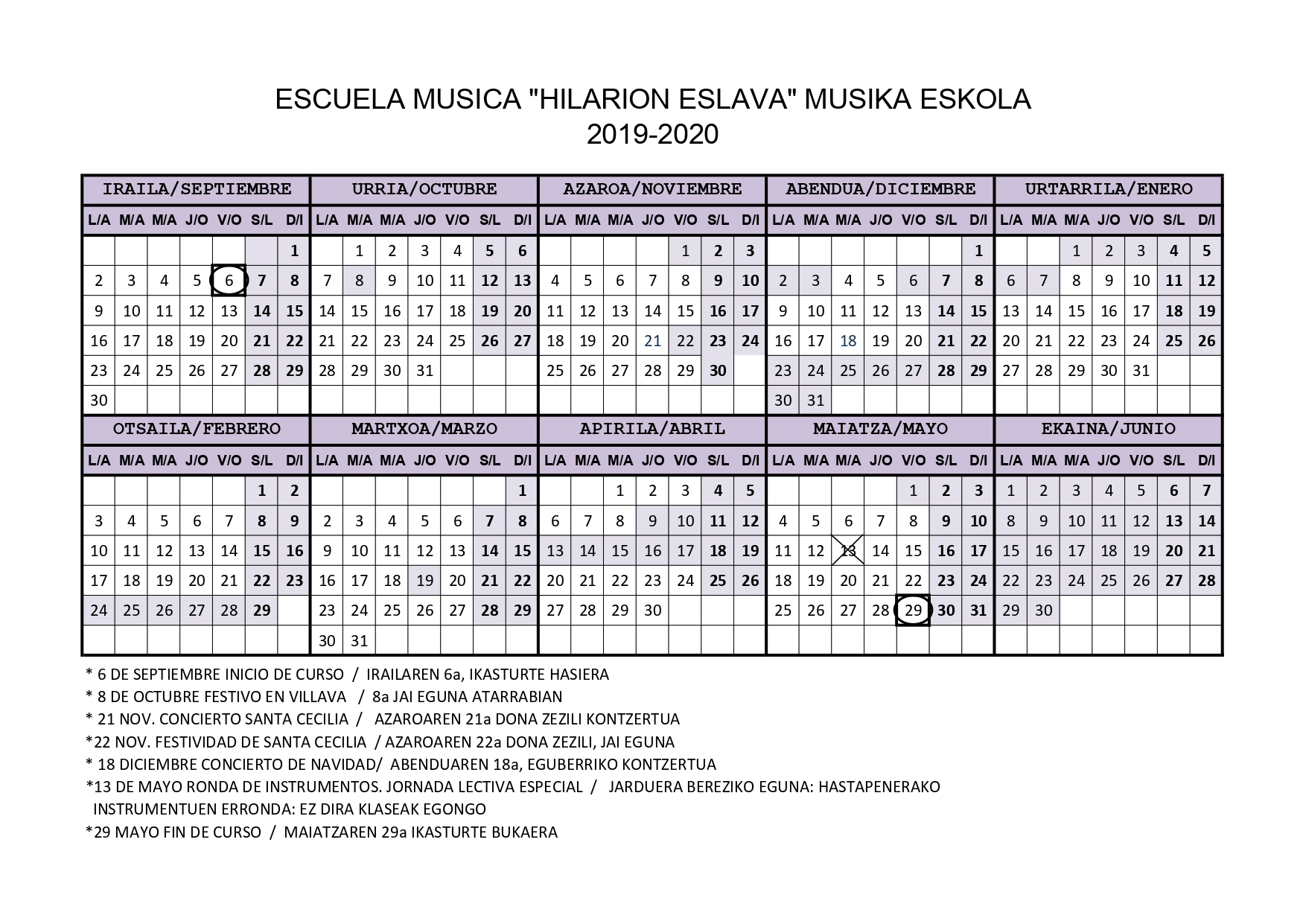 musika eskola Calendario 2019-2020jpg Publicado el 17 septiembre, 2019 a 1754 × 1241 en musika eskola Calendario 2019-2020jpg